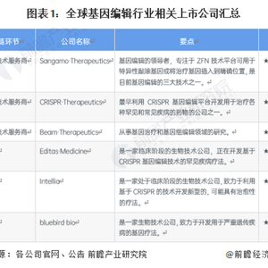 本文核心数据:全球基因编辑上市公司汇总;中国基因编辑上市公司汇总;中国基因编辑上市公司业务布局对比