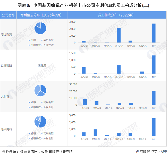 基因编辑行业上市公司相关专利情况对比
