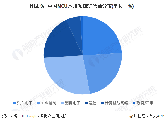 中国MCU发展起步较晚,基本落后于全球产业二十年,但发展迅速,至今经历了初步发展阶段、技术突破阶段及快速发展阶段,如今MCU已经实现了定制化的需求。MCU芯片已渗透至一系列应用领域,在家电、医疗、汽车等领域中负责感测与监控;与通信功能结合集成的产品为通信应用的微控制器;与传感器结合集成的产品为智能传感器,作用为发送测量、状态信息,接受和处理外部命令。