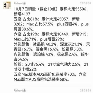 在双节假期的最后一天,华为余承东在朋友圈po出了新款问界M7的战报,称自9月12日发布以来,新M7大定超过了5万台,且仅仅10月6日一天就新增了7000台。