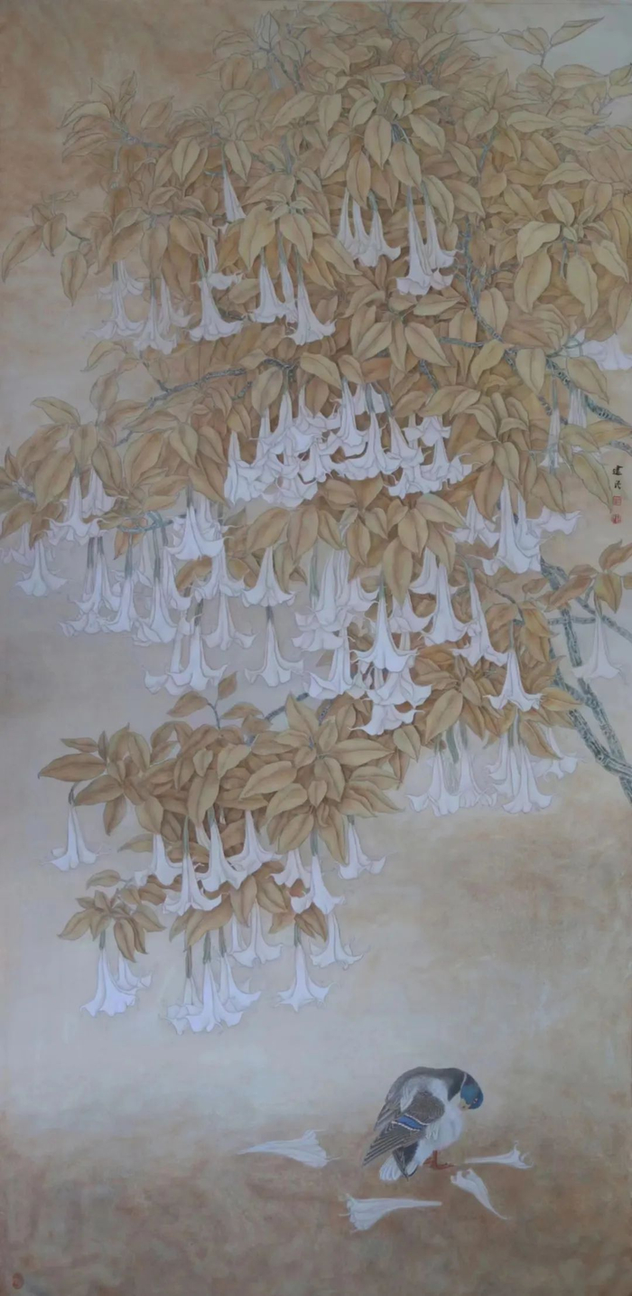 张宪文 国画 “塔影河声芦荻秋” 斗方