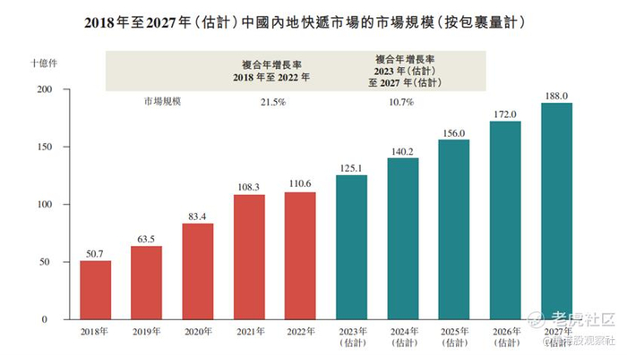 极兔在中国市场也展现出强劲的竞争力和增长势头,中国市场是全球最大和最发达的快递市场之一。根据招股书,按照包裹量计算,预计东南亚快递市场规模在2023年至2027年期间将以10.7%的复合年增长率增长,包裹量将从2023年的1,251亿件增至2027年的1,880亿件。