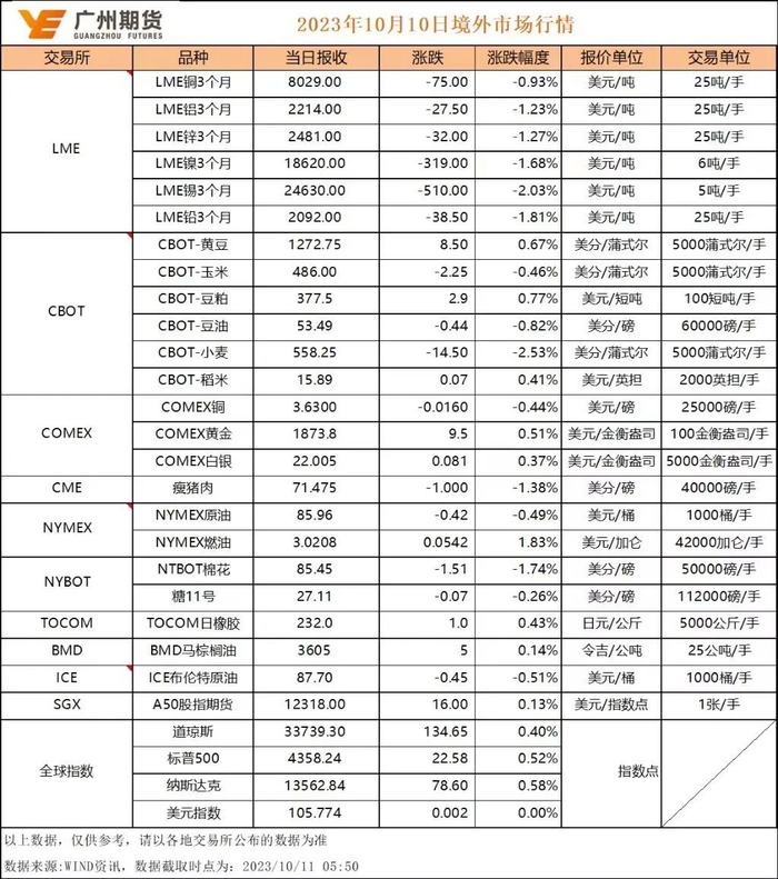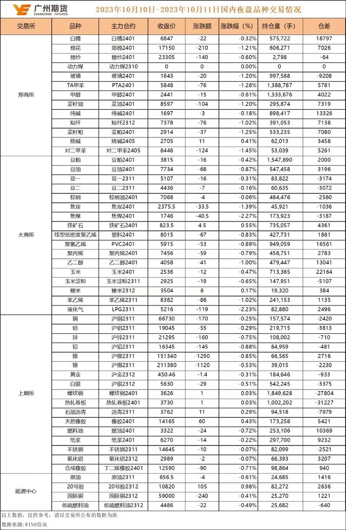 (1)宏观:国际货币基金组织(IMF)当地时间10日发布最新一期《世界经济展望报告》,预计2023年全球经济将增长3.0%,2024年将增长2.9%,2024年增速较今年7月预测值下调了0.1个百分点。