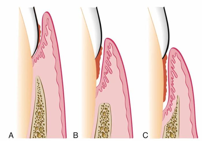 随着牙周炎的进展,病变越来越深入牙龈深处,图源:CARRANZA’S CLINICAL PERIODONTOLOGY, 12TH EDITION