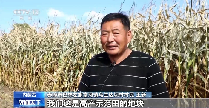 赤峰市巴林左旗富河镇乌兰达坝村村民 王新:我们这块是高产示范田的地块,示范田得了大丰收,所以老百姓心里都乐开花了。