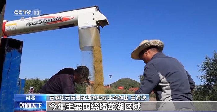 石家庄元氏县延通农业专业合作社 王海波:今年主要围绕蟠龙湖区域展开“张杂谷”种植,今年种植800余亩,每亩最大产量达到350公斤。