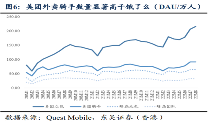 外卖平台在早前开展餐饮外卖时积累了庞大的配送资源。比如2022年上半年美团包括众包与专送在内的骑手日活接近200万,同期饿了么蜂鸟配送日活接近百万。这些庞大的骑手团队会在常规配送餐饮外卖之余,高效完成即时零售订单的配送。
