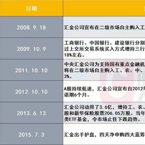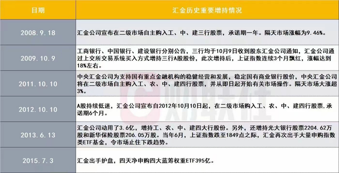 2008年9月18日,汇金宣布曾持三大行股票,第二天大盘就上涨9.45%。