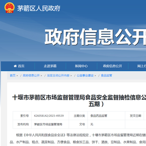 中国质量新闻网讯 2023年10月11日,湖北省十堰市茅箭区市场监督管理局发布食品安全监督抽检信息公告(2023年第五期)。