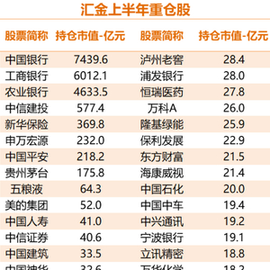 截至2023年上半年,汇金持有156家A股,总市值达到2.08万亿元。与一季度相比,总市值增长10.8%。