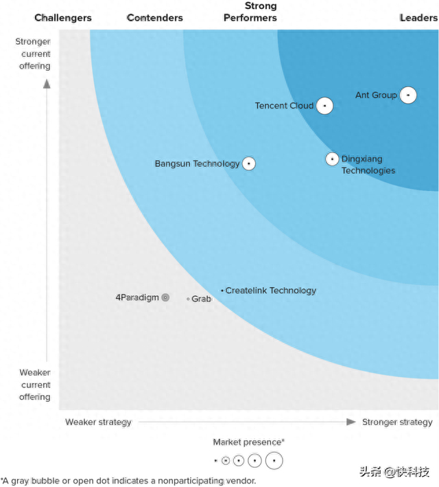 今天,国际权威研究机构Forrester发布亚太区安全风控服务商研究报告,排名前五的服务商均来自中国。其中蚂蚁集团、腾讯云分别以第一、第二的优势被评为亚太地区企业欺诈管理的“领导者”。