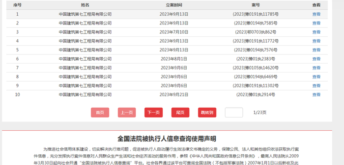 值得注意的是,中国建筑第七工程局有限公司从7月1日至记者发稿时已新增了上百条被执行人信息。