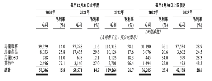 马泷齿科的收入来源主要分为马泷服务、马泷产品、马泷DSO,2020年-2022年及2023年1-4月(下称“报告期”),分别实现3.19亿元、3.99亿元、4.84亿元、1.47亿元营业收入。2021年和2022年同比分别增长25.1%和21.4%。