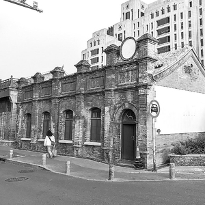 有钱人建当铺,自然比较讲究。如今的宝成当旧址共五间,采用不对称的立面处理手法。下有仿西洋式拱门与砖砌壁柱,上有巴洛克风格的圆形及曲线装饰砖雕与塑花,“宝成当”砖雕牌匾上还有一个圆形装饰,不知是不是有铜钱的喻意。