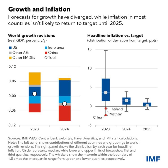 不过,IMF预计,随着通胀继续回落,不会出现全球衰退。报告指出,“预测越来越符合软着陆的情景”,特别是在美国。