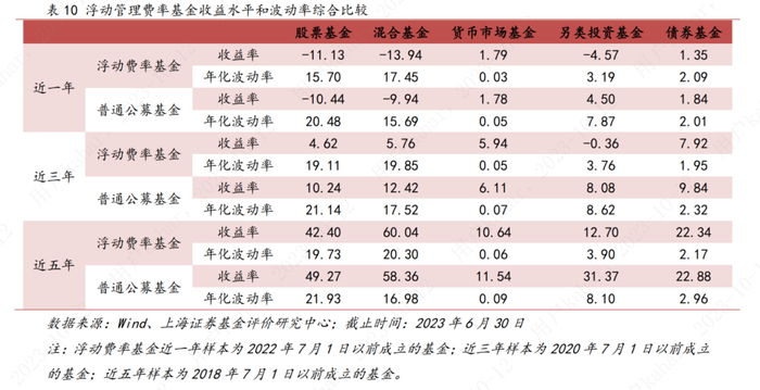 结合上文的收益率水平来看,浮动管理费基金中占比最多的主动权益类基金在获取相对更高管理费的同时,浮动管理费基金的业绩表现却劣于普通公募基金。货币市场基金与债券基金并未表现出明显差异。