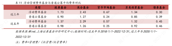 从近三年与近五年的实际管理费率来看,除债券基金外,浮动管理费基金的实际费率均高于普通公募基金的平均水平。