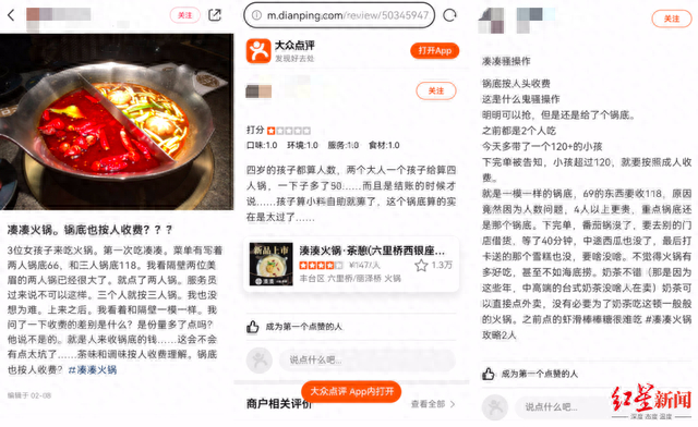 茹先生说,他吃过湊湊火锅,但都是聚餐人数较多,没有留意锅底价格,若锅底真的是同样用料但根据人数不同就售价不同,也没有给消费者明确提示,这就欺骗了消费者。“即便店员告知这是按照人头计费,也不合理,会去与店长沟通,消费体验不好。”