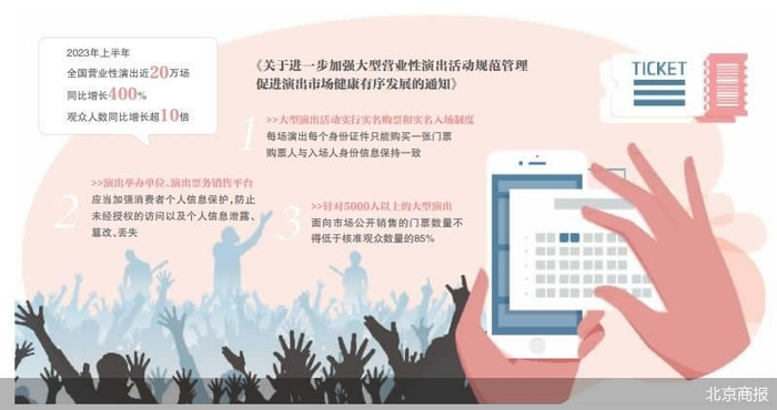 此前,文化和旅游部、公安部发布《关于进一步加强大型营业性演出活动规范管理促进演出市场健康有序发展的通知》,其中指出,大型演出活动实行实名购票和实名入场制度,每场演出每个身份证件只能购买一张门票,购票人与入场人身份信息保持一致。演出举办单位、演出票务销售平台应当加强消费者个人信息保护,防止未经授权的访问以及个人信息泄露、篡改、丢失。