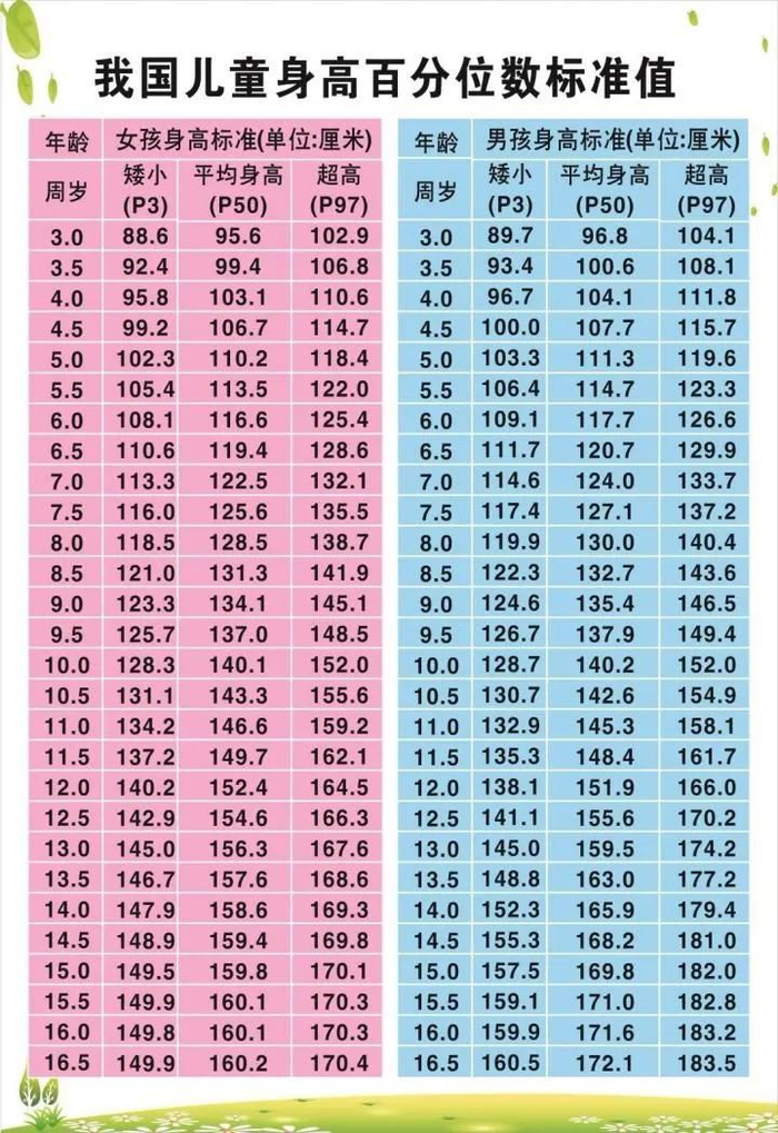 同种族、同性别和同年龄的正常人群平均身高,也是第50百分位数,为中等身高,达到平均线,即为“达标”。