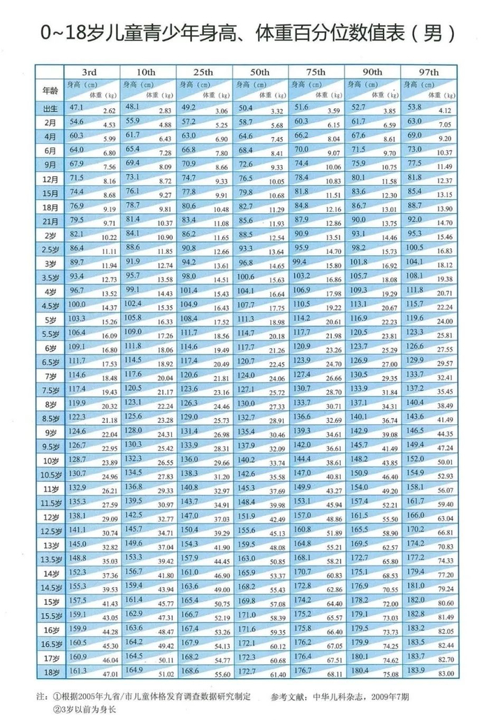 同种族、同性别和同年龄个体身高的正常人群平均身高负2个标准差者或第3百分位数为及格线。身高在及格线以上即为医学上的正常范围。当发现孩子身高在“及格线”以下,或者生长曲线严重偏离正常时,孩子才是身材矮小。比如,8岁男孩身高不到6岁男孩正常身高,就是小了两个标准差,身高就“不及格”。