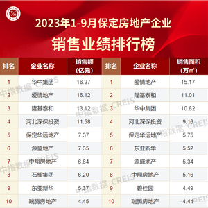 2023年1-9月保定房地产企业销售业绩TOP10