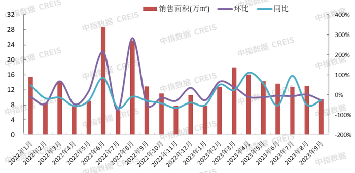 图:2022年-2023年9月保定主城区商品住宅(不含保障房)月度成交情况