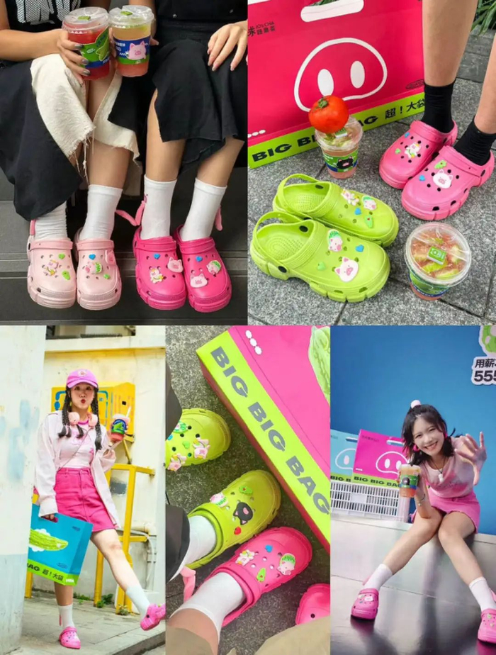 今年夏天“丑鞋”洞洞鞋成了潮人必备,林里顺势推出了48.8元洞洞鞋套餐,鞋子颜色柠檬绿,出街一脚上去没人敢说你不潮,重点是它还免费送鞋花,仿佛暗戳戳地说:“这还不拿下你?”