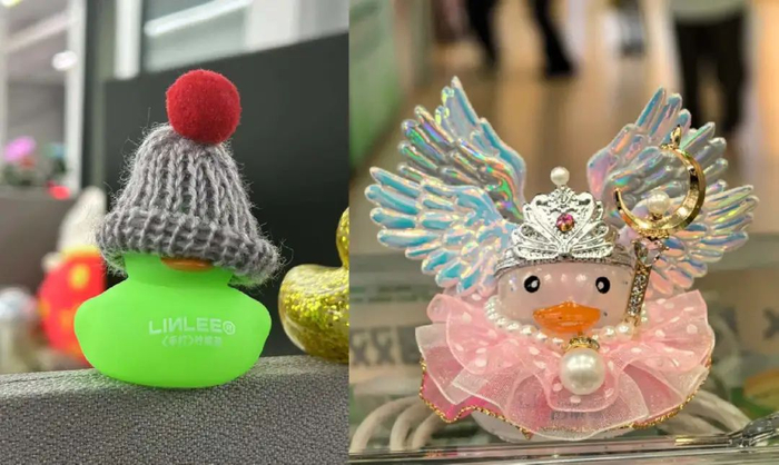 它们三五成群地站在办工位的制高点,不仅颜色从黄到黑凑齐了彩虹色,连样貌和鸭子属性都各有不同。有的像马上开口就要给你唱skr的rapper鸭,有的则是戴着豪华珍珠和华丽翅膀的维密鸭。