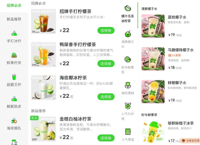 所以柠檬茶现在试图向奶茶靠拢。柠季的创始合伙人汪洁曾经和我说,“茶和柠檬只是最基础的,现在也在试图往产品里加一些像奶茶的元素。”