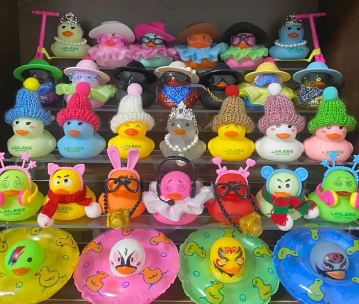 单单看裸鸭就有很多不同。表情就透露出了鸭生的喜怒哀乐,像我的鸭子们一看就不太聪明;身体除了五颜六色,有些鸭还全身亮闪闪颇有些中东气势;还有些鸭子直接变异,成为限量版的猫鸭、狗鸭、和熊猫鸭。