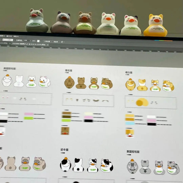 这些鸭子或许真的在义乌买不到。小红书博主@郭穎GuoClever 表示林里最近新出的猫鸭就是他参与设计的。“可惜工厂有工厂的想法”,面对网友货不对版的提问,他在评论区回复道。