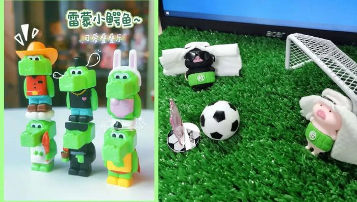 和林里黄鸭类似的还有柠季的小绿鳄鱼,以及茶救星球的苦瓜猪,都是一杯送一只,看着消费者桌子上的鸭猪鱼动物军团越来越壮大,我很难不怀疑柠檬茶行业有一个想开动物园的心。不过后两者的周边显然没有林里出圈,因为我还未曾见过养猪人和养鱼人。