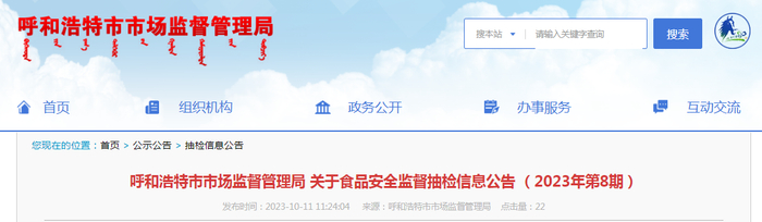 呼和浩特市市场监督管理局关于食品安全监督抽检信息公告(2023年第8期)