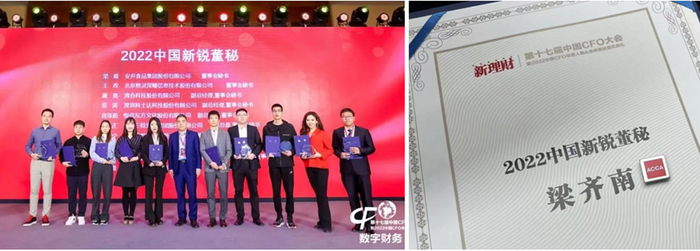 “2022中国新锐董秘”获奖者合影,右二为梁齐南