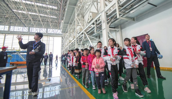 科研现场体验区——由部件数字化生产线、总装脉动生产线、试飞生产线等三个飞机装配生产体验区域构成,引领参观者全景式地了解飞机生产、研制、装配全流程,拉近与“大国重器”的距离,激发爱党爱国爱航空的崇高情怀。
