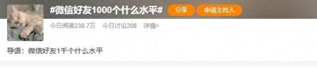 近日,#微信好友1000个什么水平#话题冲上热搜,引起网友热议。