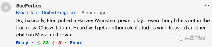 “所以,尽管和电影业无关,但马斯克还是学习了哈维·韦恩斯坦(因性侵多名女星坐牢的行业大佬)的权术,真典啊…