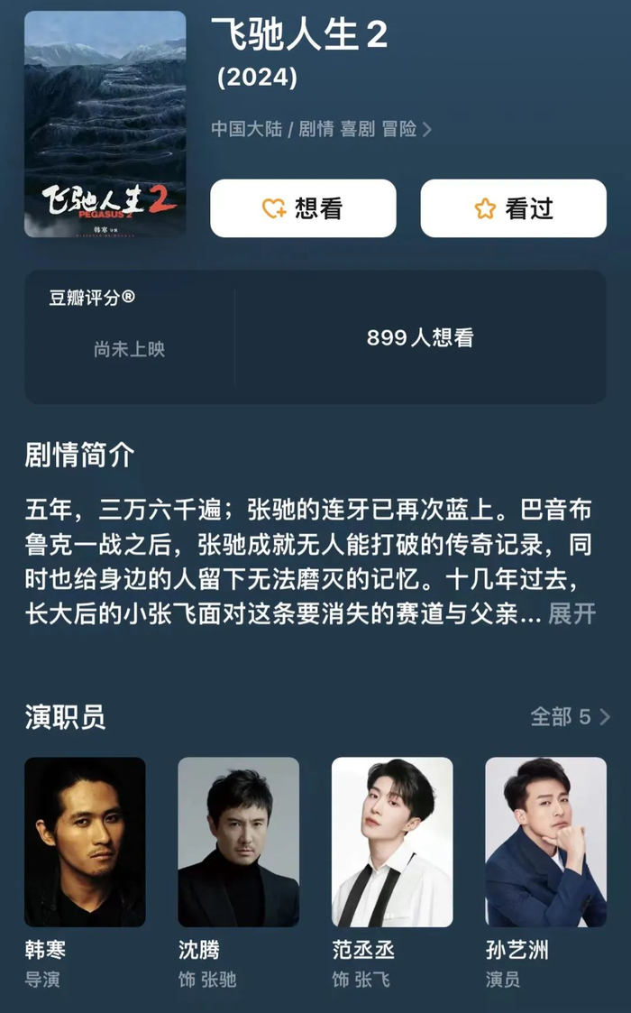 只不过天才作家韩寒并不甘于这样的结果,据报道,今年亭东影业影视立项中《飞驰人生2》赫然在列,依然是由韩寒亲自编剧。