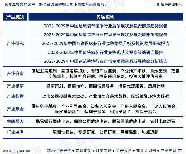 《中国装饰装修行业市场需求分析及投资方向研究报告》是智研咨询重要成果,是智研咨询引领行业变革、寄情行业、践行使命的有力体现,更是装饰装修领域从业者把脉行业不可或缺的重要工具。智研咨询已经形成一套完整、立体的智库体系,多年来服务政府、企业、金融机构等,提供科技、咨询、教育、生态、资本等服务。
