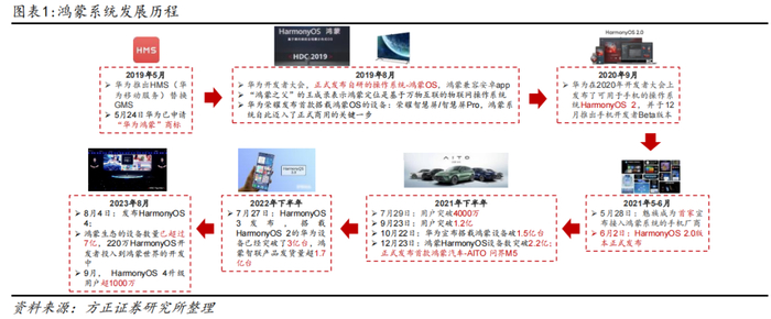2023年8月,HarmonyOS 4正式发布,鸿蒙生态设备数量突破7亿,220万开发者投入鸿蒙世界。截止今年9月,HarmonyOS 4升级用户超1000万。