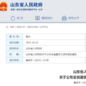10月13日,山东省人民政府发布全省最低工资标准。
