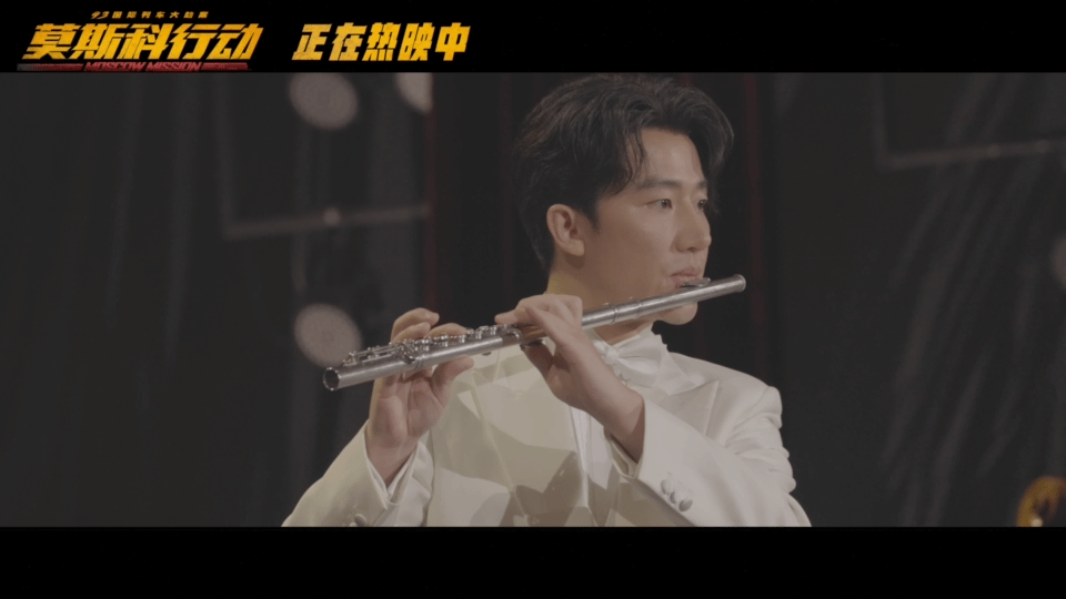 黄轩特别为苗青山这个角色加入了长笛的元素。 动图来自电影《莫斯科行动》官微