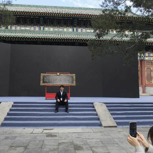 圆明园博物馆正式揭牌,工作人员在“圆明园博物馆”牌匾前留影。新京报记者 浦峰 摄