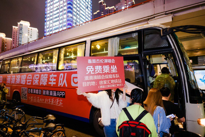 10月12日至15日,周杰伦演唱会在上海体育场举办。演唱会期间,作为公共交通的补充,在主管部门的指导下,滴滴组建了演唱会保障车队,每晚散场后疏散乐迷助其快速离场。滴滴演唱会保障车队的运营路线为上海体育场9/10号门至徐家汇地铁站 (漕溪北路百脑汇附近),现场观众可在工作人员的指引下免费乘坐,乘车期间请避免拥挤,有序排队,帮助大家更快出发。
