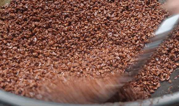 期间要不停用大锅铲翻动山核桃仁,以防烧焦