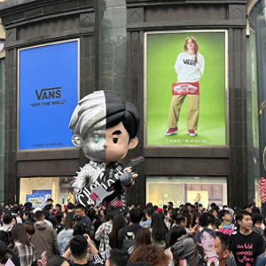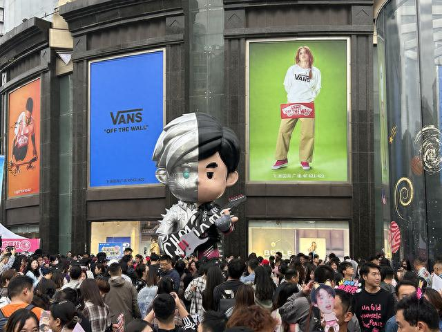 10月12日下午,上海体育场附近,很多歌迷聚集在周杰伦人偶手办周围。