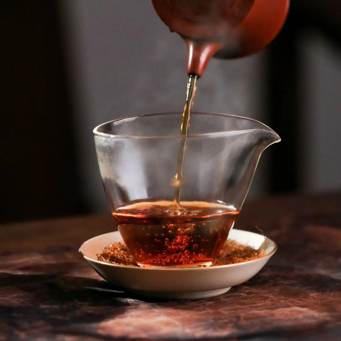 茶汤橙红明亮,带有金圈,若美人深情的回眸,温润如玉。
