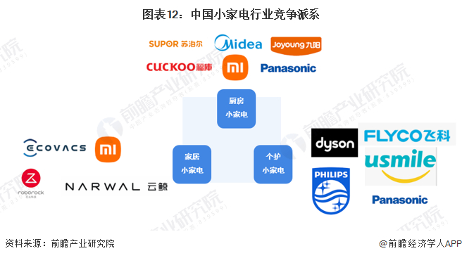根据各市场主体主营产品的类型差异,中国小家电行业可以划分为三个竞争派系。厨房小家电领域的主要参与者有美的集团、苏泊尔、九阳股份、松下电器等;家居小家电产品主要包括扫地机器人、洗地机、无线吸尘器等产品,参与者包括科沃斯、石头科技、小米科技、云鲸等品牌;个护小家电产品主要包括电吹风、电动剃须刀、电动牙刷等产品,市场参与者包括戴森、飞利浦、飞科电器、松下电器、USMILE等。