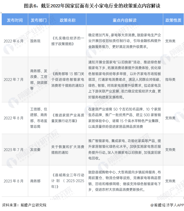 近年来,国家鼓励有条件的地方开展绿色智能家电下乡,通过企业让利、降低首付比例等方式,促进农村居民消费。支持家电、家具等企业开展“以旧换新”、“以换代弃”活动,加强家电安全使用年限标准等宣传解读,鼓励家电合理更新。总结梳理来看,近年来国家层面对于小家电行业的政策关键词在于:新一轮家电下乡、以旧换新、补贴消费、家电回收。